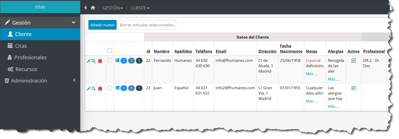 - – Seleccionando cualquier cita existente del calendario, se podría consultar un modificar, para ajustarla a las nuevas necesidades.