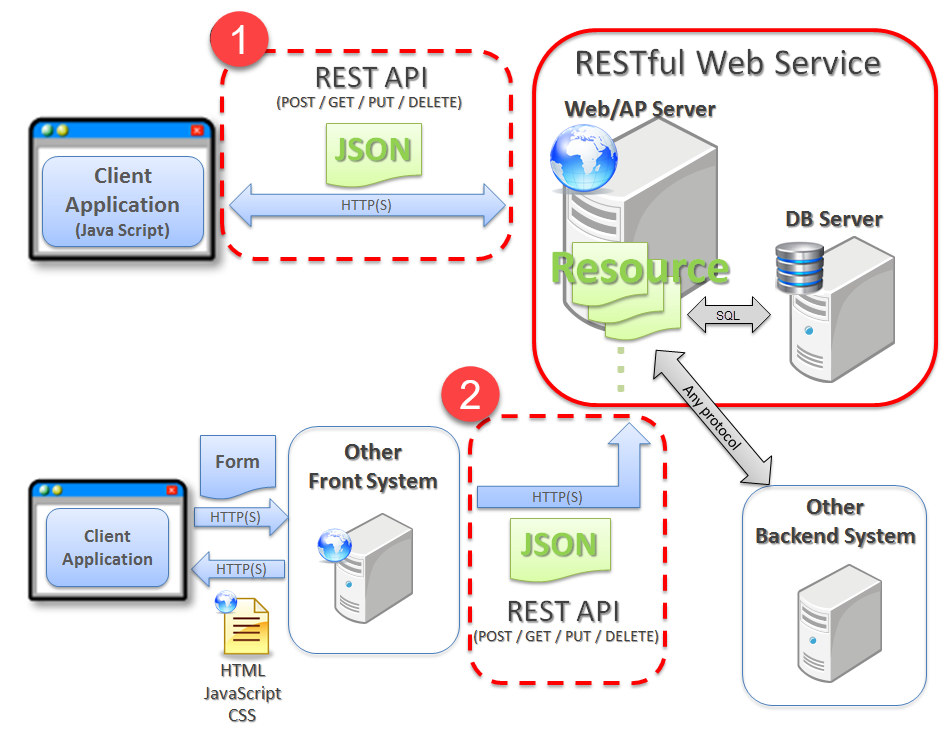 En esta imagen se reflejan los principales usos de los servicios REST. Como podéis comprobar hay 2 formas de usarlos.
